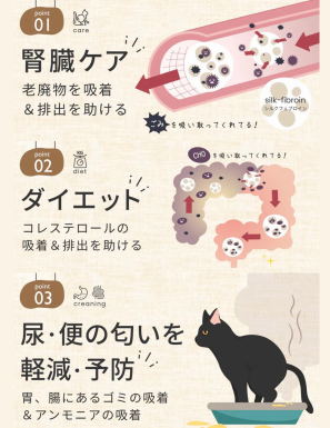 尿・便の匂いを軽減・予防 ・胃や腸のゴミの吸着&アンモニアの吸着、尿と便の臭いの軽減と予防をします。